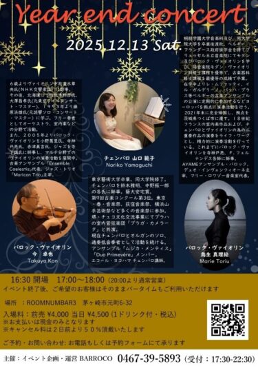 今年も早いもので Yearend concert のご案内の季節となりました。 今回は、チェンバロとバロック・ヴァイオリン2挺で巡る、ヨーロッパ古楽の世界です。当時のヴァイオリンの様々な技巧を活かした作品の数々をお届けい […]